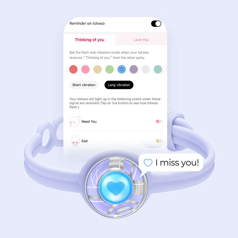 With totwoo long distance touch bracelets, a gentle touch on one person's bracelet causes the other person's bracelet to vibrate and light up.